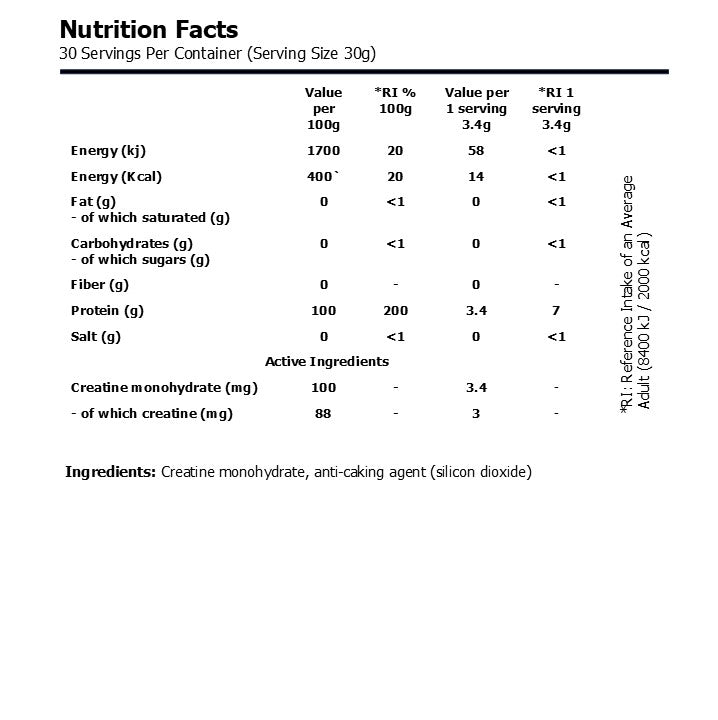 Προτεινόμενη Χορήγηση Αναμείξτε 150ml νερού με 5g Κρεατίνη